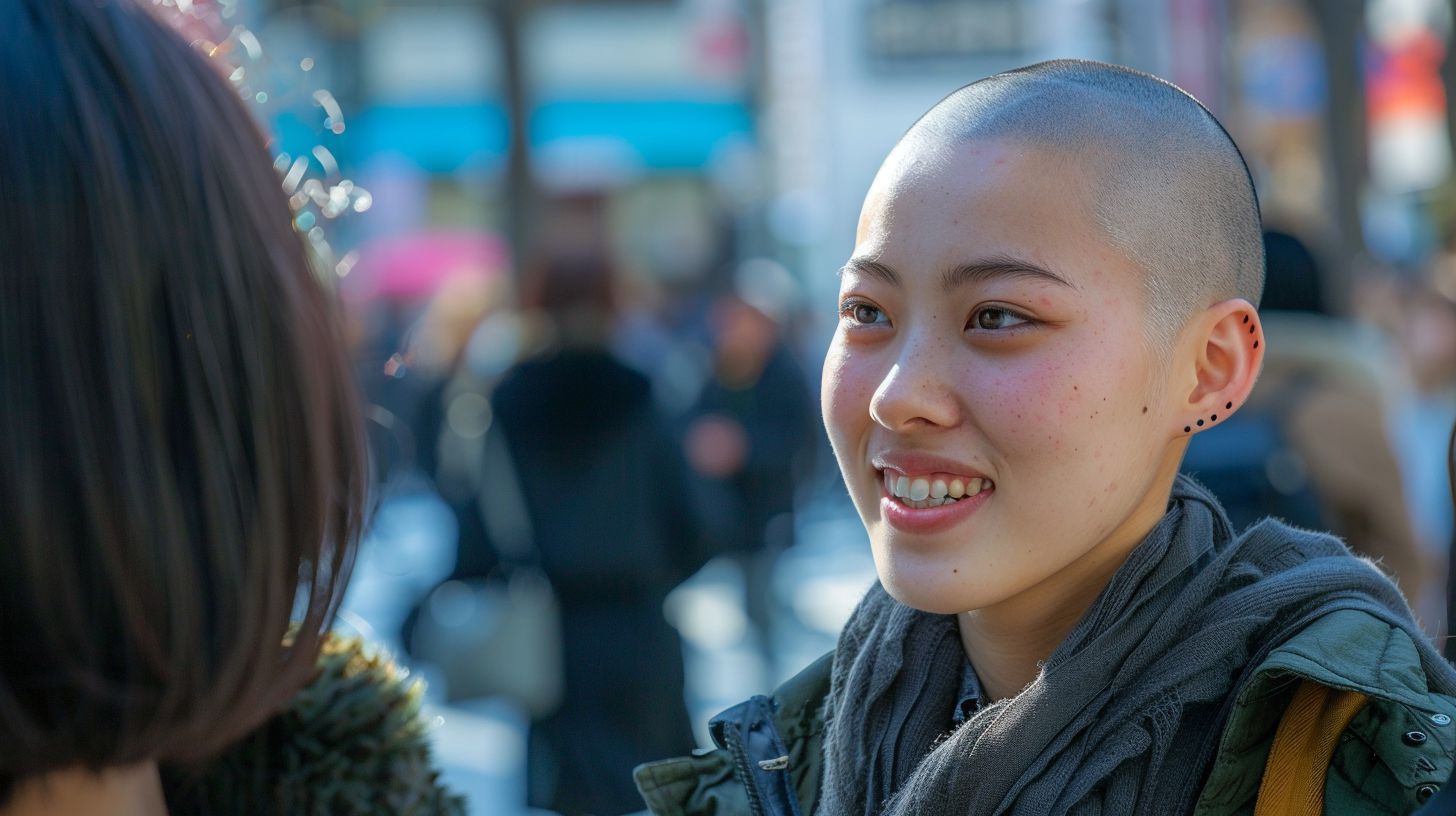 スキンヘッドの女の子は、さっぱりした性格が多い? 質問に、何でも答えてくました (^-^)v